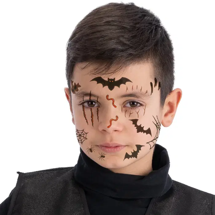 Her er det virkelig nemt at gøre dit barn klar til halloween eller en anden anledning, hvor det er herligt med edderkopper eller orme i ansigtet. Disse fantastiske ansigtstatoveringer med flagermus-motiver er perfekte til at skabe den rette uhyggelige stemning.