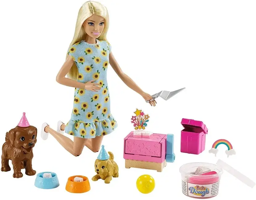 Barbie - Hvalpefest - Blond (GXV75) er den perfekte dukke til enhver hundeelsker. Dukken kommer med en sød hundehvalp og tilbehør til en sjov fest. Den blonde Barbie-dukker har flot tøj og tilbehør, der gør hende klar til at lege med hunden. Med denne dukke kan børnene lade deres fantasi løbe løbsk og skabe utallige eventyr med Barbie og hendes hundeven. Denne dukke er det perfekte legetøj til kreative legestunder og vil med garanti bringe masser af glæde og sjov til børnene.