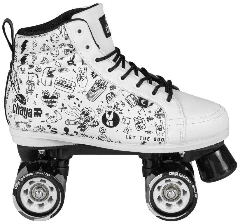 The Chaya Sketch is one of the coolest skate designs which puts you back in time to the beginning of roller skating! The black on white sketched design gives props to roller derby, GRL PWR, and everything in between. The mid-cut boot scores are high with