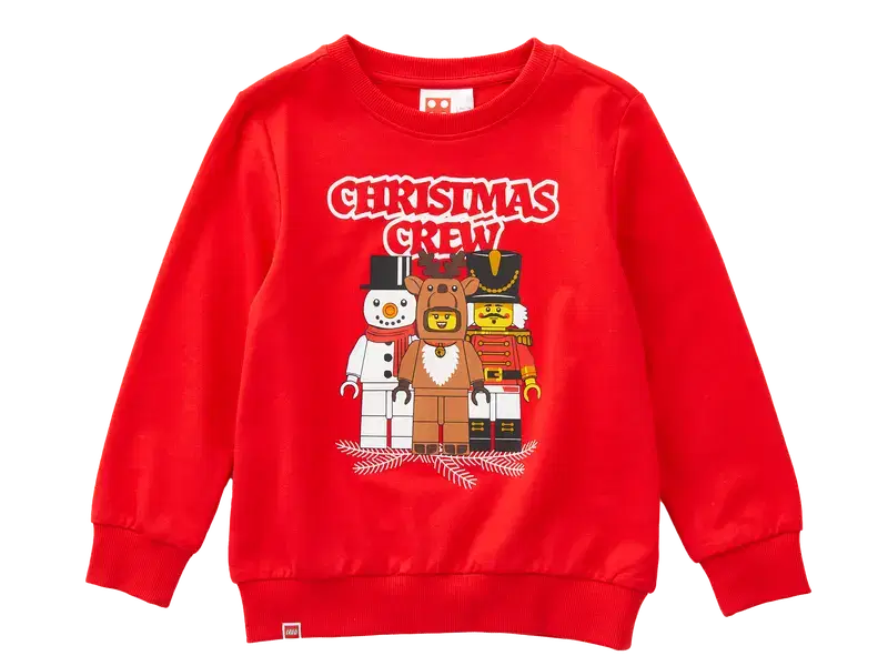Julesweater Fra LEGO er den perfekte måde til at holde dit barn varmt og i højt julehumør! Denne røde sweatshirt er lavet af 100 % bomuld og har et farverigt tryk af 3 LEGO minifigurer: en snemand, et rensdyr og en nøddeknækker. Den kan maskinvaskes og fås i forskellige størrelser fra 4 til 12 år. Det er en populær og sjov gaveidé til børn, der elsker julen, og den er perfekt som adventsgave eller julegave. Lad dit barn sprede juleglæde i denne hyggelige sweatshirt fra LEGO!