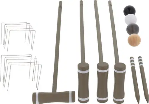 KROKET GRÅ-BRUN I GUMMITRÆ er det perfekte udendørs spil til sommerens sjov og underholdning. Dette kroket sæt indeholder fire køller og bold, samt to målpinde og en startpind, alt sammen opbevaret i en robust og stilfuld træboks. Det er ideelt til både børn og voksne, og kan spilles i haven, parken eller på stranden. Med sit smukke gråbrune design og holdbare gummitræs materialer, er dette kroket sæt både funktionelt og stilfuldt. Tag det med dig på næste udendørs eventyr og nyd en dag fyldt med sjov og konkurrence.