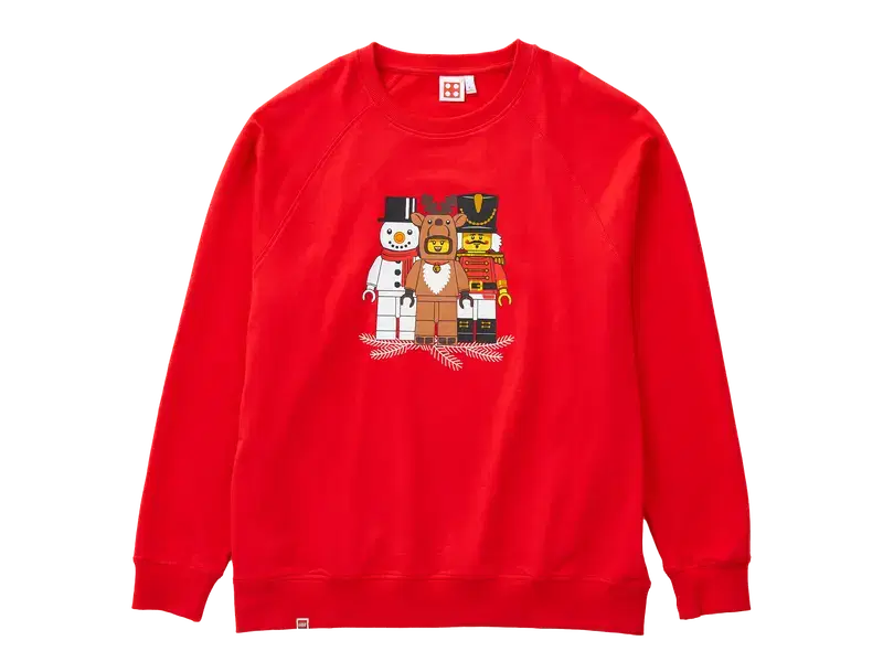 LEGO Jule sweateren har et farverigt tryk af 3 LEGO minifigurer: en snemand, et rensdyr og en nøddeknækker. Den røde sweatshirt i 100 % bomuld kan maskinvaskes og er en sjov og farverig gaveidé til LEGO fans. Den fås i forskellige størrelser fra XS til XXL, så der er noget for enhver LEGO entusiast. Perfekt som julegave eller adventsgave til LEGO® fans – Forkæl dig selv, eller giv den hyggelige sweater som en varm og sjov gaveoplevelse. Gør dig klar til julesæsonen med denne hyggelige LEGO julesweater.