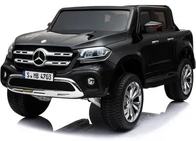 Mercedes X-Class Elbil, Sort, er den perfekte elbil til børn, der elsker at køre rundt og have det sjovt. Med en brugervenlig fjernbetjening har forældre fuld kontrol over bilen, mens børnene nyder turen. Sikkerhedsseler sørger for maksimal sikkerhed, mens opladeren gør det nemt at holde bilen kørende.Den indbyggede musikfunktion tilbyder forskellige sange, og radiofunktionen tilføjer endnu mere sjov til køreturen. Med døre, der kan åbnes, fire gummidæk, en LCD-skærm og en USB port, er denne elbil fyldt med cool features. Produktet er CE-mærket og har en maksimal belastning på 50 kg, hvilket gør den velegnet til de fleste børn.