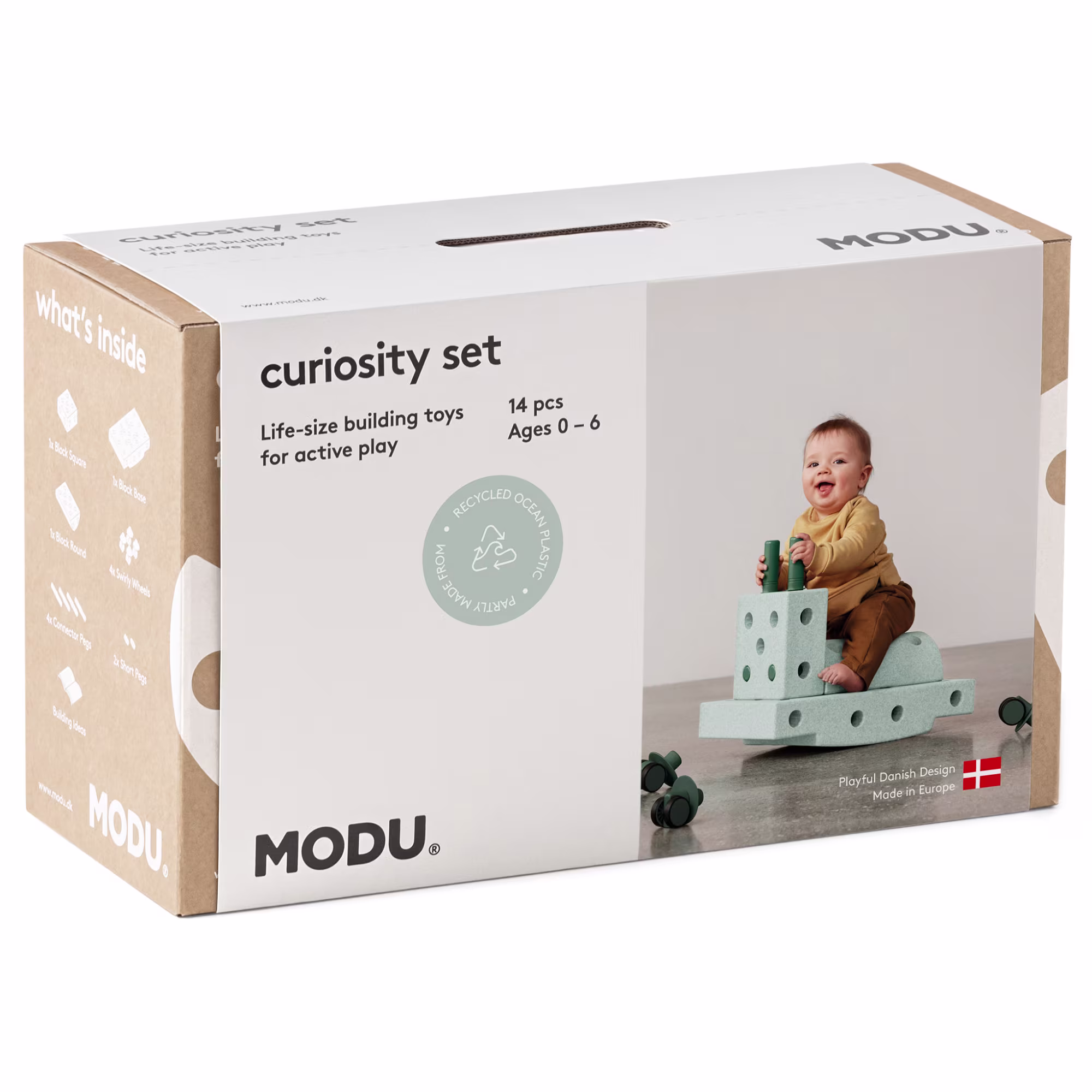 Dyk ned i en verden af kreativ leg med MODU byggesæt - Curiosity kit i Ocean mint/forest green. Dette spændende byggesæt indeholder en række forskellige moduler og accessory packs, der kan kombineres på utallige måder, så børnene kan udforske deres fantasi og skabe deres egne unikke legeuniverser. De farverige og holdbare moduler er designet til at stimulere børnenes motoriske færdigheder og give dem mulighed for at udvikle sig gennem leg. Dette kit er ideelt til børn fra 6 måneder og opefter og kan bruges både indendørs og udendørs. Så tag med på en sjov og lærerig legerejse med MODU byggesæt - Curiosity kit i Ocean mint/forest green. KAN KØBES HER!