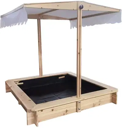 - Tag, der også fungerer som sandkasselåg.